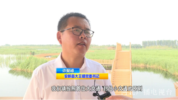 安新县大王镇党委书记 许聚峰:我们镇按照管住大交通,封住小交通的原则,对木栈道周边进行封控,周边共有1600亩水面,外围是由这个围堤围埝作为隔离封控手段,为了增加水体的流动,我们开了7个口,这7个口也用不同方式进行了封控,有围网,有护栏,在东北角留了一个门,只有执法人员可以进入,其他游人包括渔船是进不来的。在木栈道东和木栈道北我们还设置了绝对管控区,任何人都不得进入。