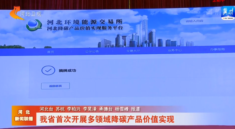 河北卫视《河北新闻联播》:我省首次开展多领域降碳产品价值实现