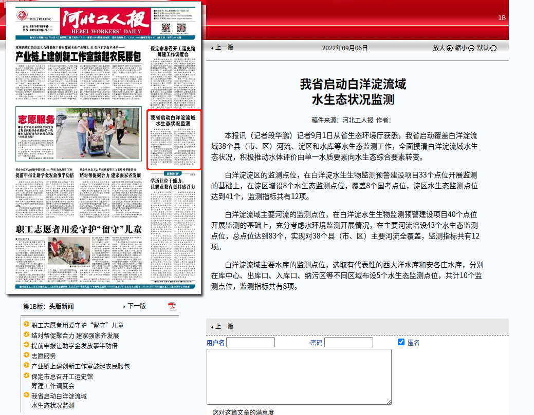 河北工人报:我省启动白洋淀流域水生态状况监测