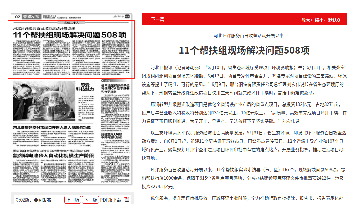 精准帮扶,帮助企业破解难题。环评服务百日攻坚活动期间,各帮扶组通过多种方式,全方位了解项目环评情况,对企业提出的各类问题进行现场解答,对推进项目落地提出建议措施,真正帮扶企业破解减污治污、绿色发展过程中的难点堵点。加强与省级开发区的指导对接,了解园区内企业诉求,为各园区下步规划环评变更调整和报审工作做好基础服务。成立钢铁行业建设项目专项帮扶组,采取“线上+线下”方式,先后面向邯郸市、唐山市、邢台市等28个拟建钢铁项目建设单位召开调度会,对环评工作进行“点对点”精准跟踪和指导帮扶。
