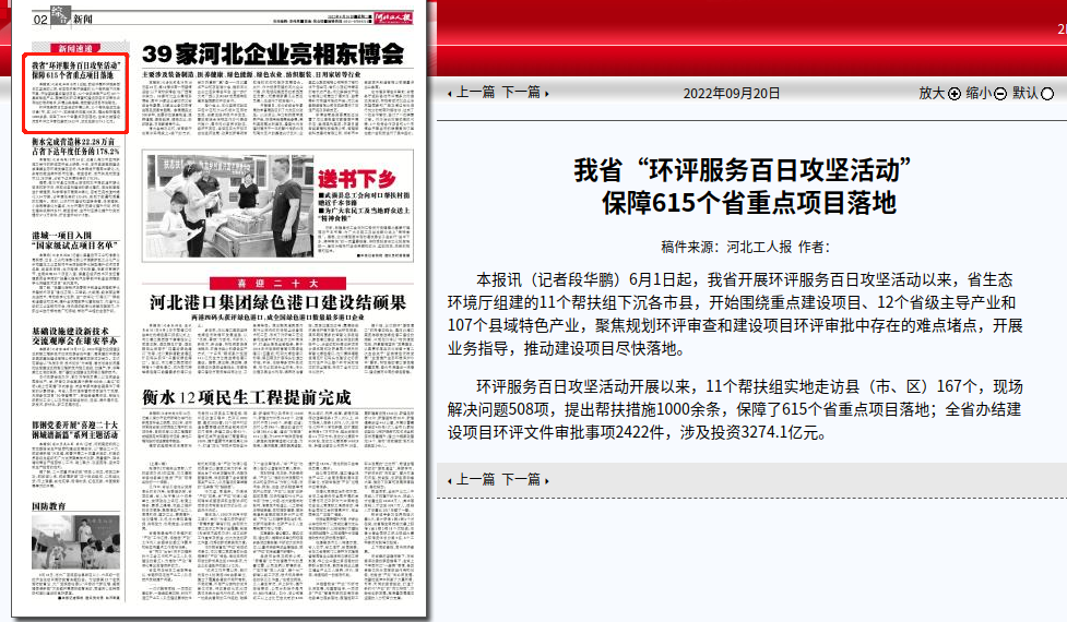 河北工人报:我省“环评服务百日攻坚活动”保障615个省重点项目落地