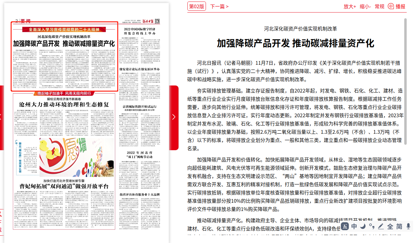 河北日报:河北深化碳资产价值实现机制改革 加强降碳产品开发 推动碳减排量资产化