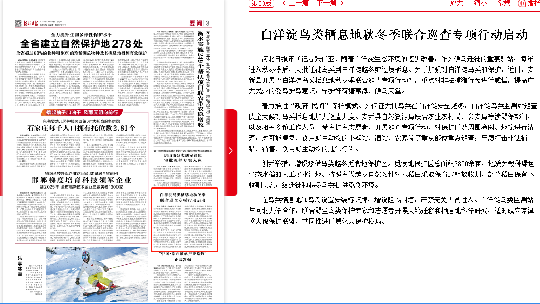 河北日报:白洋淀鸟类栖息地秋冬季联合巡查专项行动启动