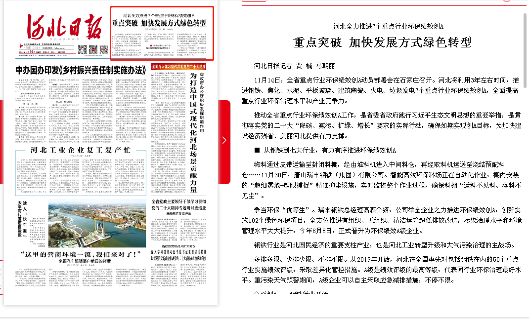 按照部署,河北将以提升重点行业企业污染治理水平和核心竞争力为目标,以优化能源结构、交通运输结构、产品结构为路径,以科技创新、政策创新、机制创新为支撑,推进耗能高、排放大的重点行业企业实现环保绩效A级标准,促进减污降碳协同增效,积极推动发展方式绿色转型。