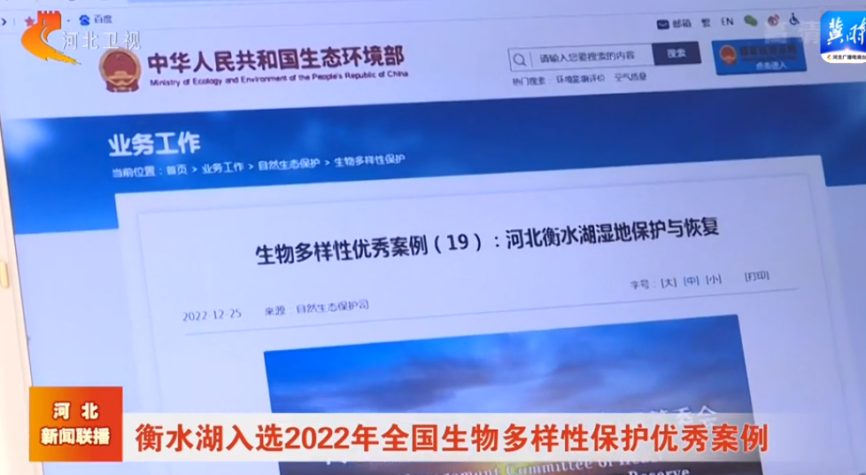 河北卫视《 河北新闻联播》: 衡水湖入选2022年全国生物多样性保护优秀案例