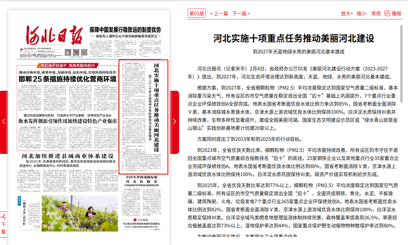河北日报:河北实施十项重点任务推动美丽河北建设