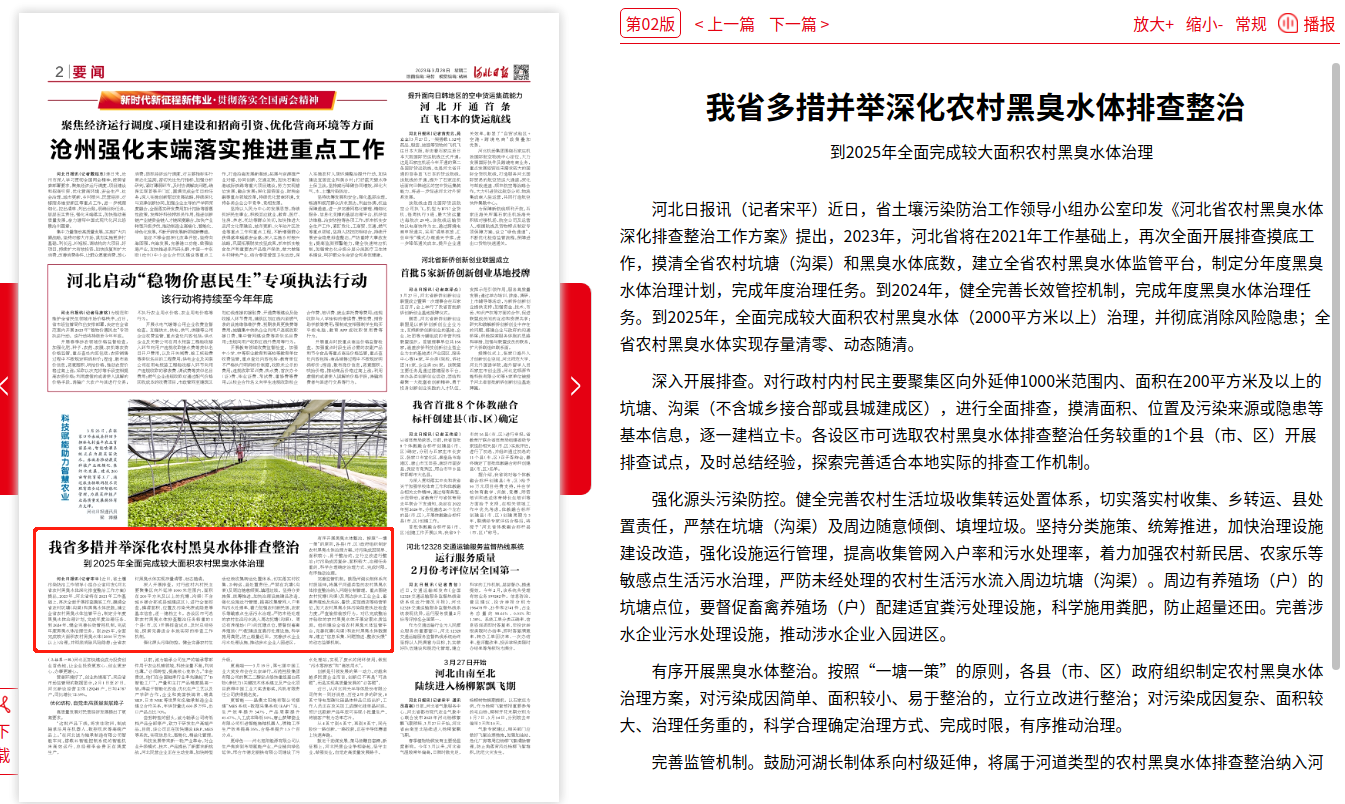 河北日报:我省多措并举深化农村黑臭水体排查整治