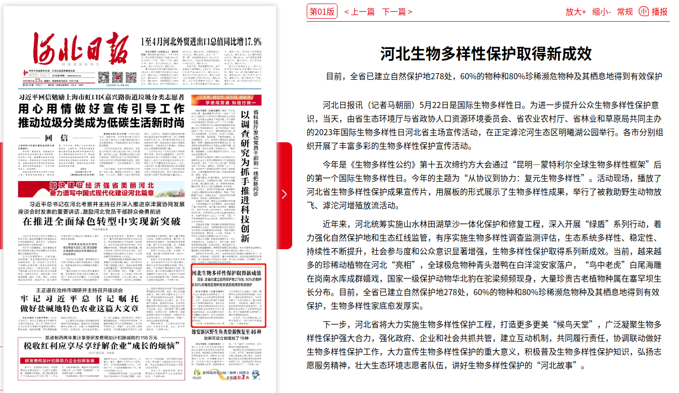 河北日报:河北生物多样性保护取得新成效