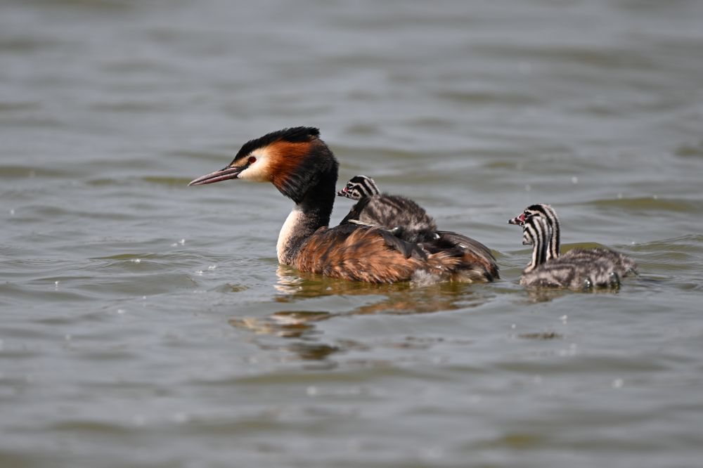 漫步衡水湖畔,随处可见刚出壳不久的小䴙鹈们依偎在雌性䴙鹈的背上。远处的雄性䴙鹈一边慢游,一边在水中搜寻着食物。