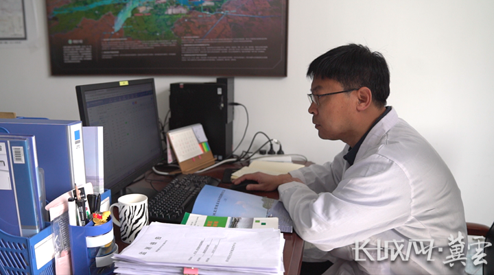 张冬生整理数据档案。长城网·冀云客户端记者 刘淼 摄