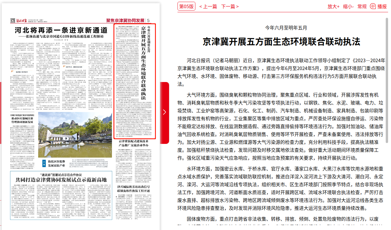 河北日报:今年六月至明年五月 京津冀开展五方面生态环境联合联动执法
