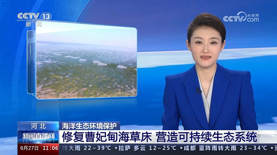 CCTV13 《新闻直播间》:河北海洋生态环境保护 修复曹妃甸海草床 营造可持续生态系统