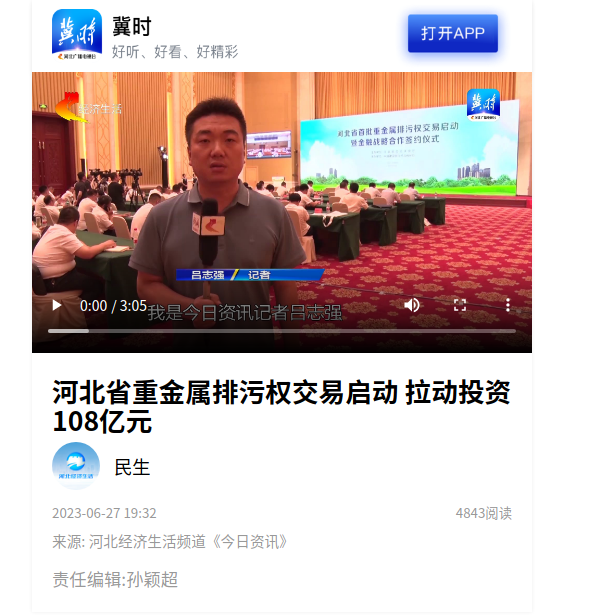 燕赵都市报:河北省重金属排污权交易启动:17个项目竞得指标,可拉动投资108亿元