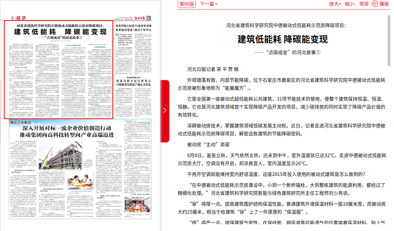 河北日报:河北省建筑科学研究院中德被动式低能耗示范房降碳项目:建筑低能耗 降碳能变现