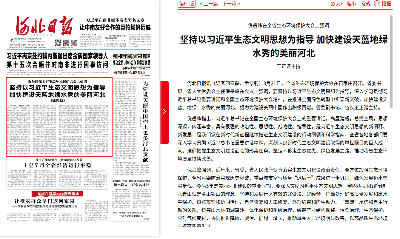 河北日报:倪岳峰在全省生态环境保护大会上强调 坚持以习近平生态文明思想为指导 加快建设天蓝地绿水秀的美丽河北