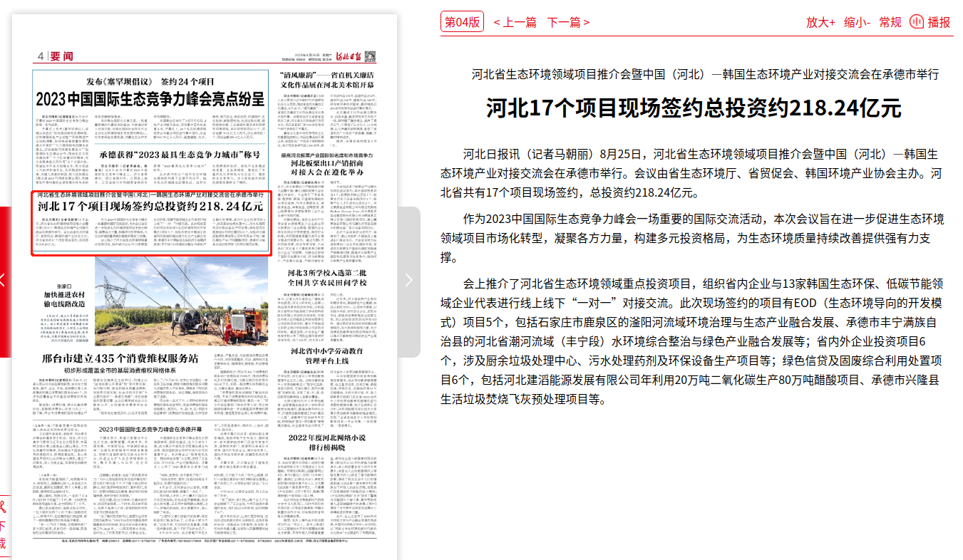 河北日报:河北17个项目现场签约总投资约218.24亿元