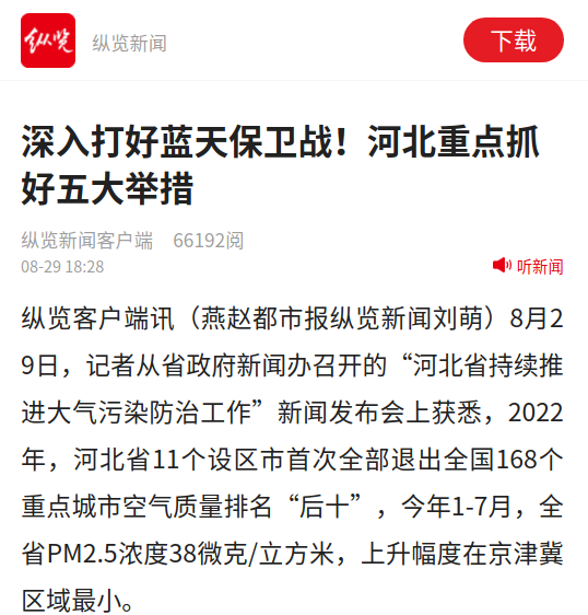 纵览新闻客户端:深入打好蓝天保卫战!河北重点抓好五大举措