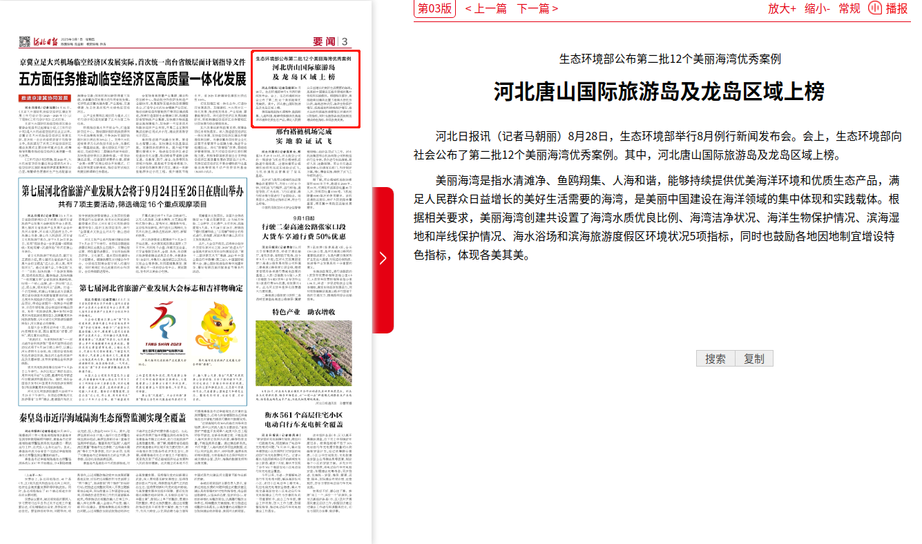 河北日报:杏彩公布第二批12个美丽海湾优秀案例 河北唐山国际旅游岛及龙岛区域上榜