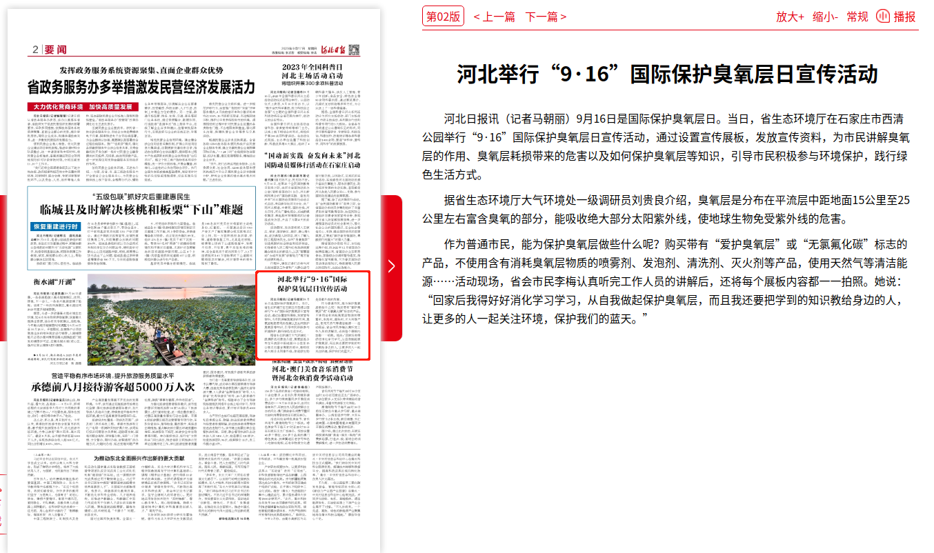 河北日报:河北举行“9·16”国际保护臭氧层日宣传活动