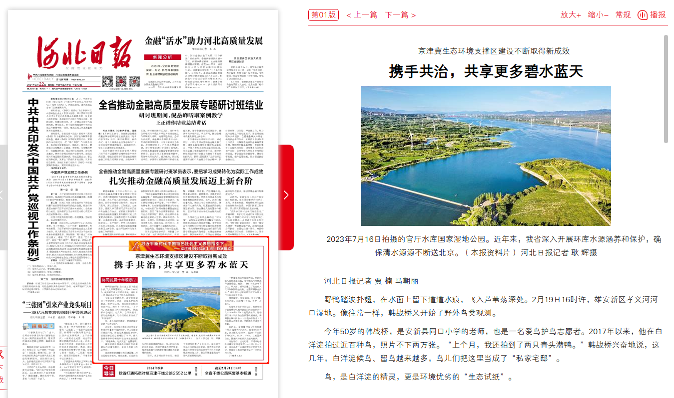 河北日报:京津冀生态环境支撑区建设不断取得新成效 携手共治,共享更多碧水蓝天