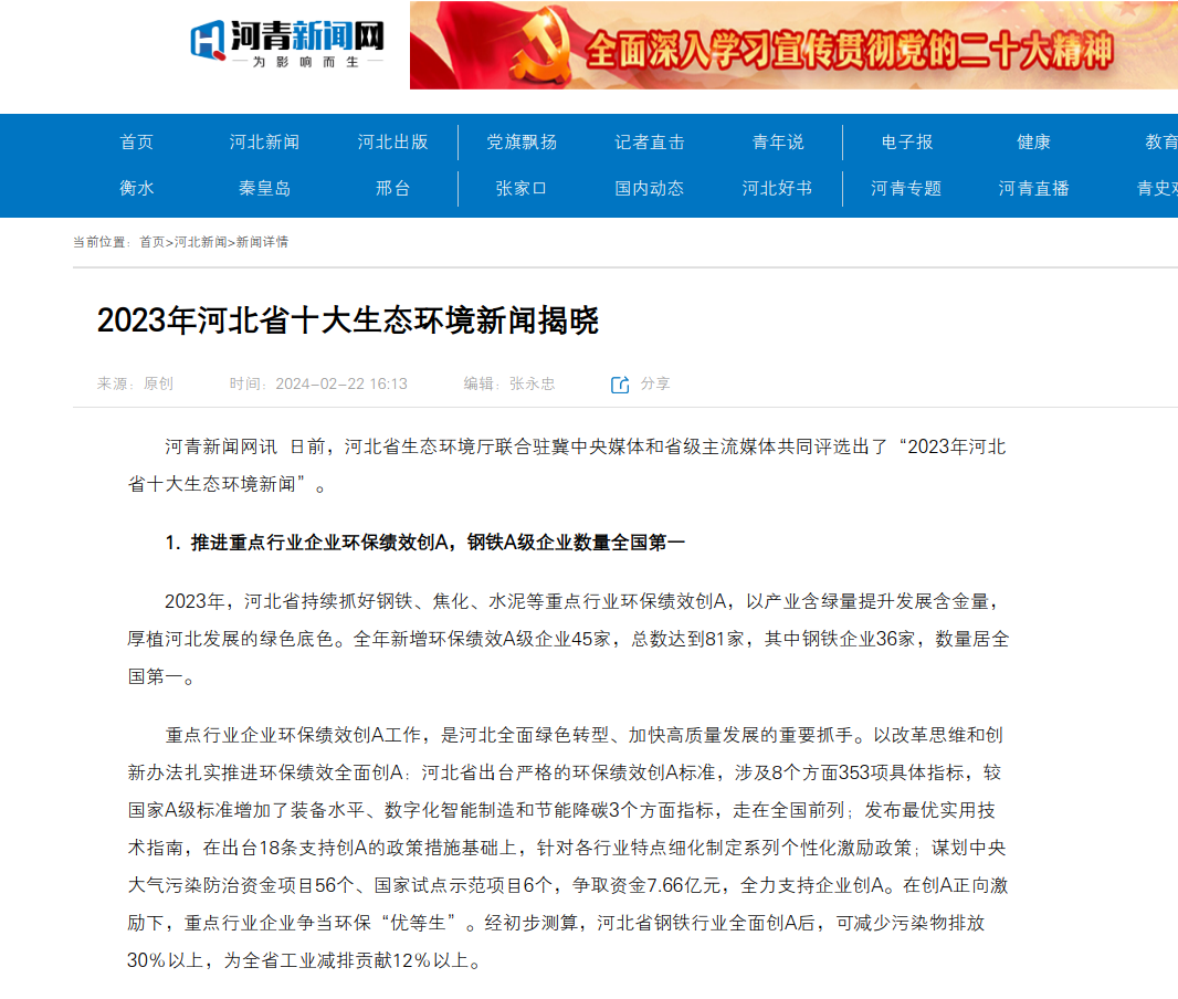 河青新闻网:2023年河北省十大生态环境新闻揭晓