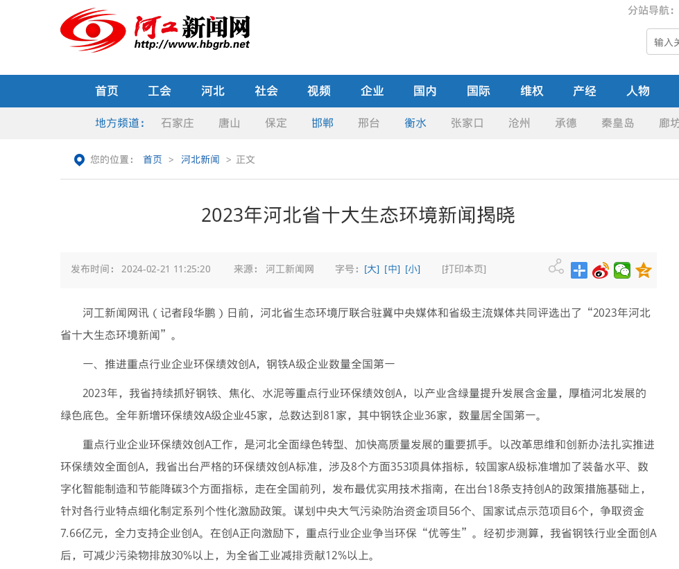 河工新闻网:2023年河北省十大生态环境新闻揭晓
