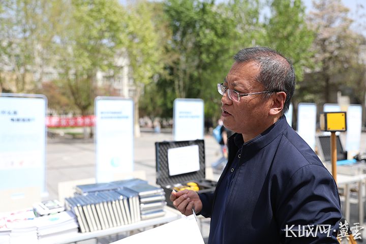 辐射环境安全技术中心高级工程师王树刚在活动现场讲解辐射相关安全知识。河北经济日报记者 李佳琦 摄