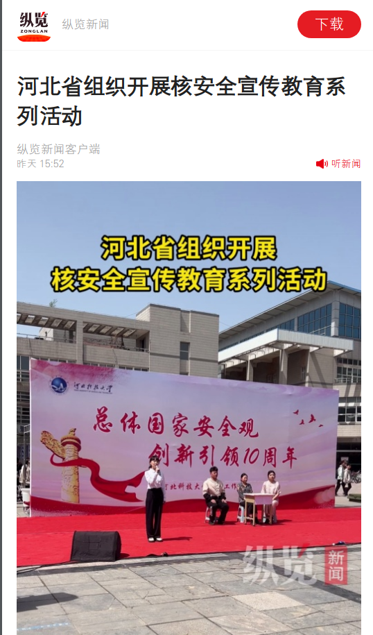 纵览新闻客户端:河北省组织开展核安全宣传教育系列活动