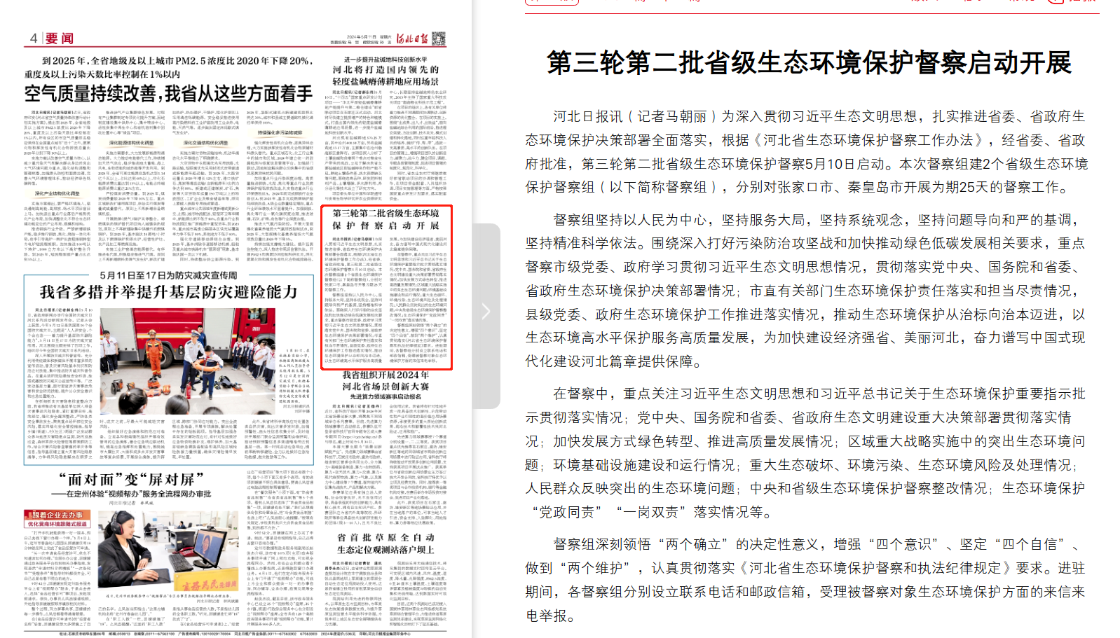 河北日报:第三轮第二批省级生态环境保护督察启动开展