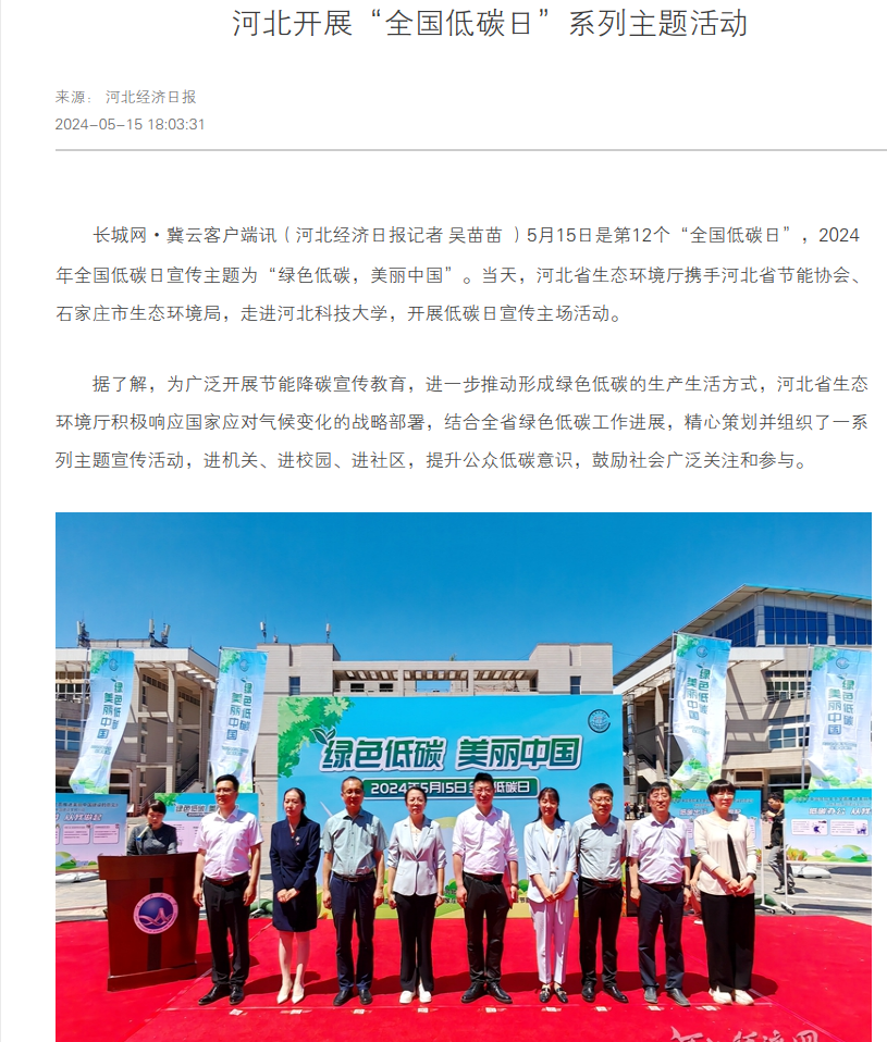 长城网·冀云客户端讯(河北经济日报记者 吴苗苗 )5月15日是第12个“全国低碳日”,2024年全国低碳日宣传主题为“绿色低碳,美丽中国”。当天,杏彩(中国)官方网站 携手河北省节能协会、石家庄市生态环境局,走进河北科技大学,开展低碳日宣传主场活动。