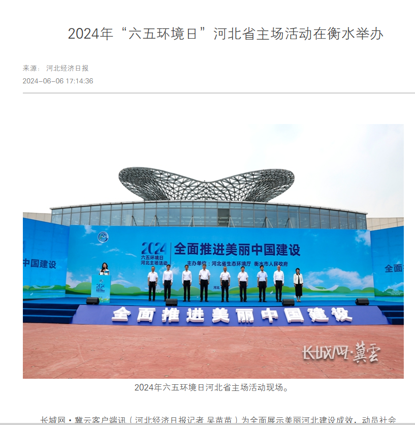 长城网·冀云客户端讯(河北经济日报记者 吴苗苗)为全面展示美丽河北建设成效,动员社会各界共同参与生态环境保护事业,以实际行动全面推进美丽中国建设,6月5日, 2024年六五环境日河北省主场活动在衡水市举办,活动主题为“全面推进美丽中国建设”。