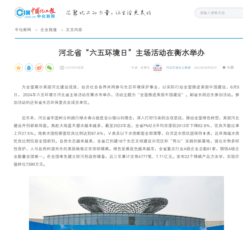 中国化工报:河北省“六五环境日”主场活动在衡水举办