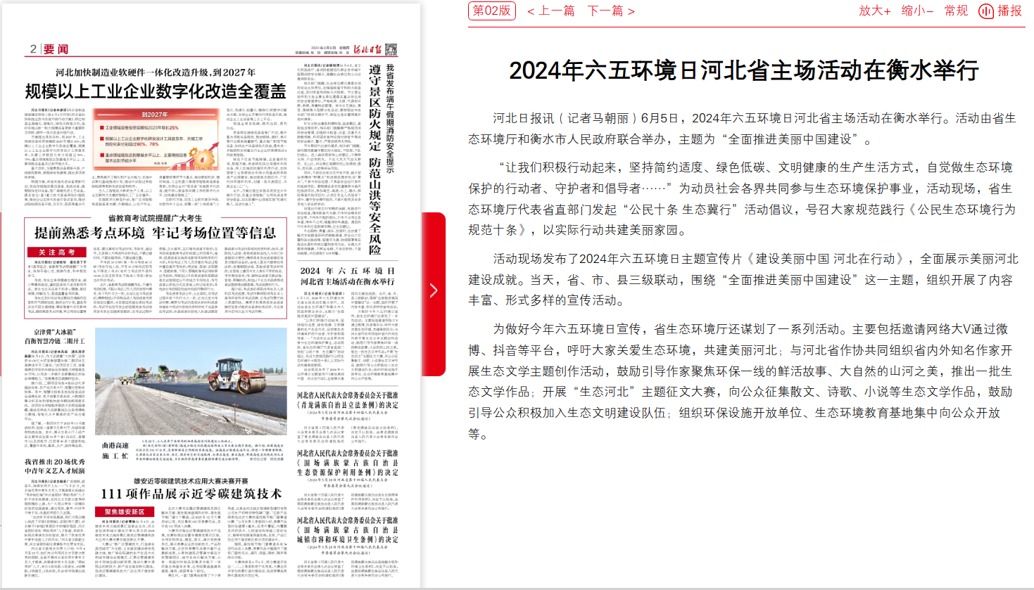 河北日报:2024年六五环境日河北省主场活动在衡水举行