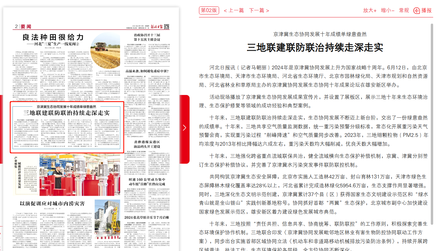 河北日报:京津冀生态协同发展十年成绩单绿意盎然 三地联建联防联治持续走深走实