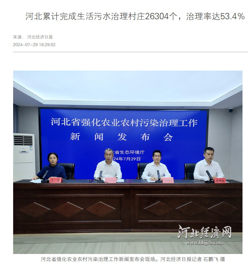 长城网·冀云客户端讯(河北经济日报记者 吴苗苗 石鹏飞)7月29日,记者从杏彩(中国)官方网站 召开的“河北省强化农业农村污染治理工作”新闻发布会上获悉,今年截至6月底,全省新增完成生活污水治理村庄1624个,累计完成26304个,治理率达到53.4%;全省改造卫生户厕36.47万座、建设公厕2792座、恢复重建粪污处理站144座。