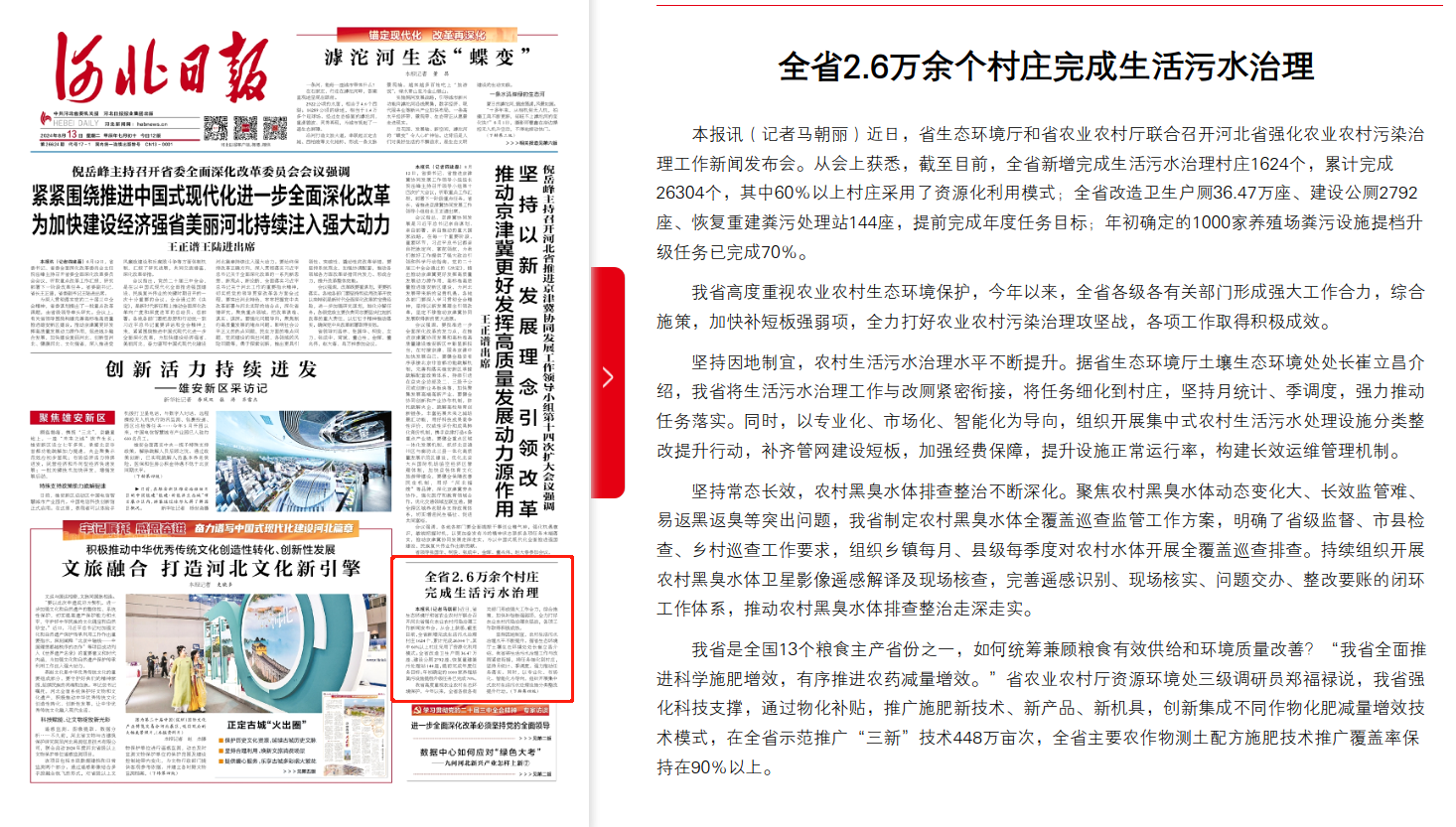 河北日报:全省2.6万余个村庄完成生活污水治理