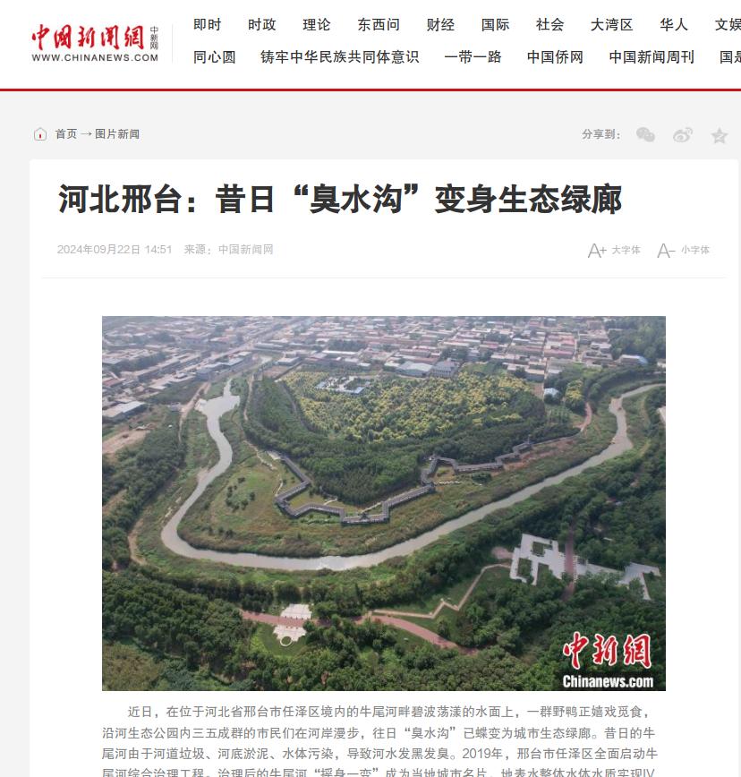 中国新闻网:河北邢台:昔日“臭水沟”变身生态绿廊
