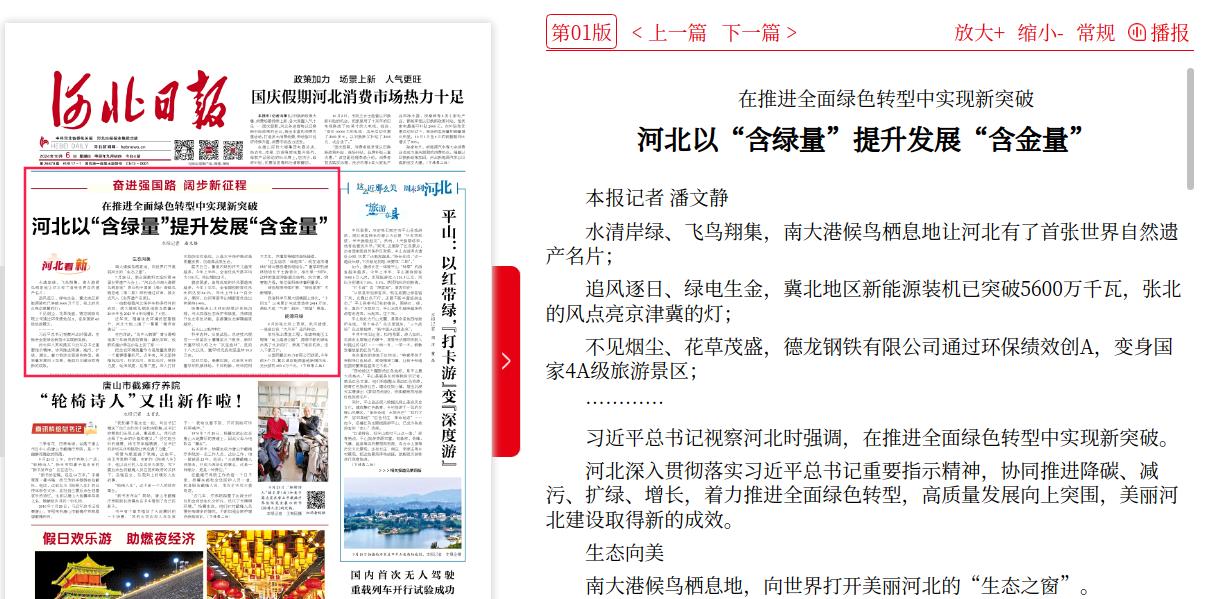 河北日报:奋进强国路 阔步新征程·河北看新丨河北以“含绿量”提升发展“含金量”