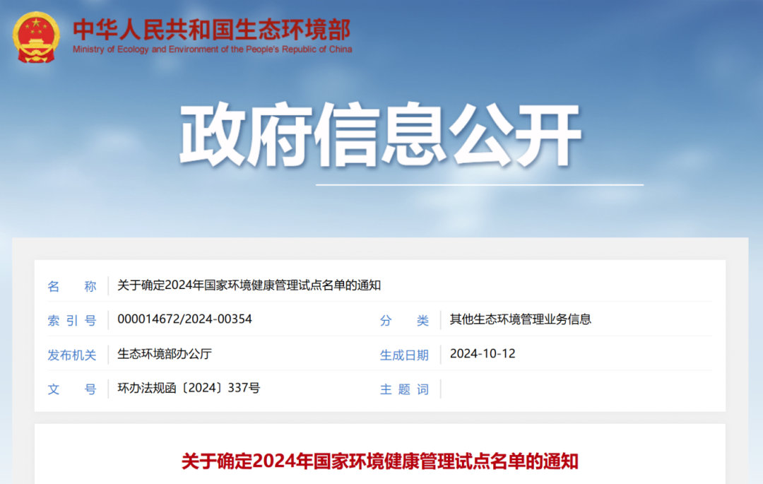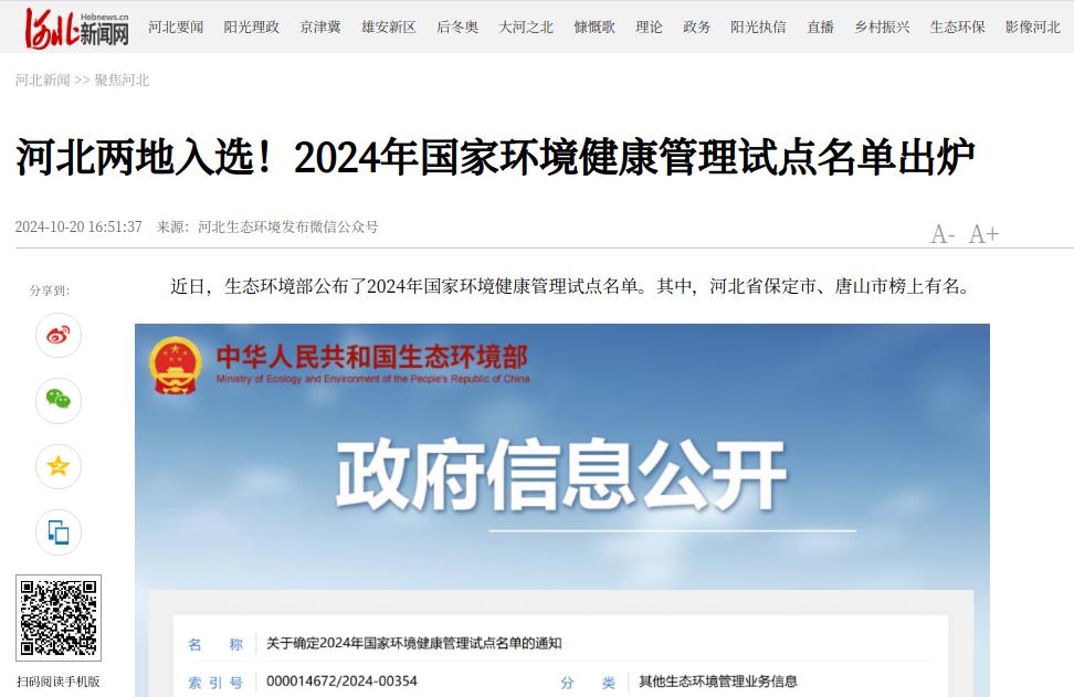 河北新闻网:河北两地入选!2024年国家环境健康管理试点名单出炉