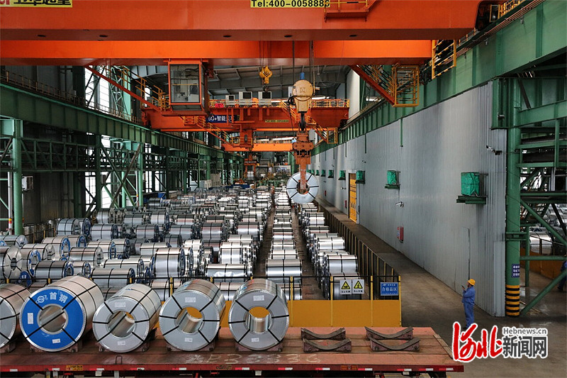 近日,在首钢京唐公司冷轧作业部高强镀锌板成品库,运用大废钢比冶炼技术生产的钢卷正等待装车。河北日报记者王育民摄