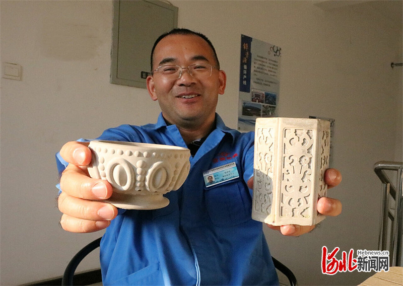 在程峥明办公桌上,冶金渣做成的笔筒和花瓶摆在中间位置。“这是我们的新尝试,待完成市场调研、时机成熟后,将打造一批固废手工艺品,通过融入首钢元素,把‘首钢造’品牌叫得更响。”程峥明说。