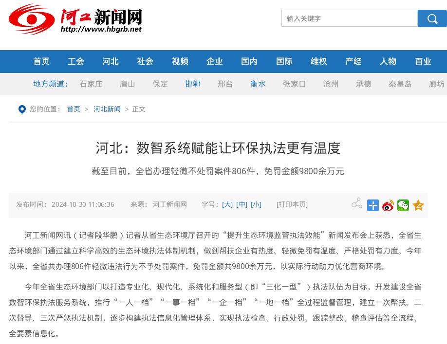 河工新闻网:河北:数智系统赋能让环保执法更有温度