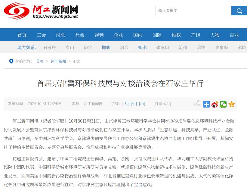 河工新闻网:首届京津冀环保科技展与对接洽谈会在石家庄举行