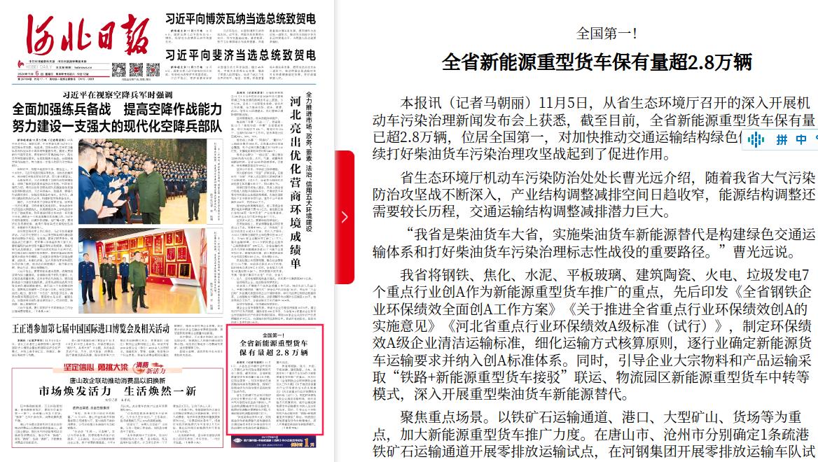 河北日报:全国第一!河北省新能源重型货车保有量超2.8万辆