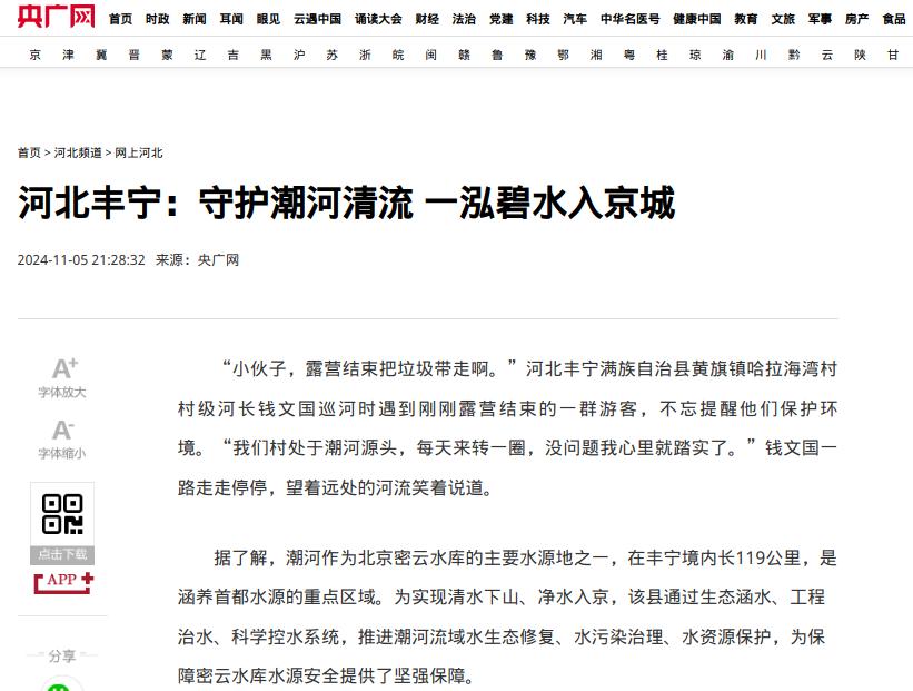 央广网:河北丰宁:守护潮河清流 一泓碧水入京城