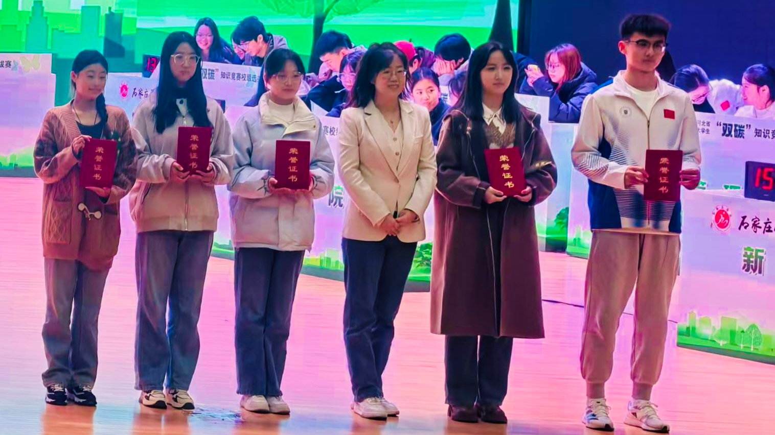 比赛现场,同学们不仅展现了高水平的竞技状态,还通过互动与交流,进一步加深了对“双碳”战略的理解,激发了投身生态文明建设的热情。此次选拔赛不仅是一次知识的较量,更是一次环保意识的普及和提升,为推动河北省乃至全国的大学生积极参与“双碳”实践,贡献青春力量奠定了坚实的基础。