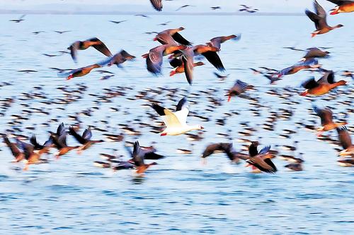 “就在前几天,在衡水湖观测到了国内罕见的雪雁。”衡水滨湖新区资源保护局湿地生态监测科科长张余广介绍,雪雁俗名白雁,主要繁殖于北极苔原地带,在衡水湖是第一次被记录到。至此,衡水湖观测记录到的鸟类增至335种。