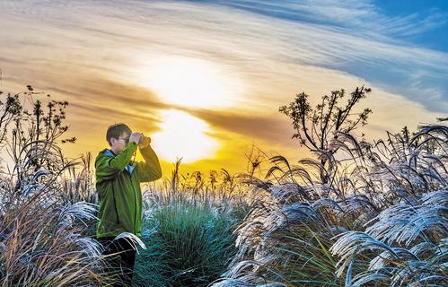 11月17日,张余广在观测鸟群。