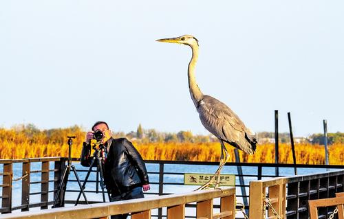 11月17日,一位摄影师正在拍摄苍鹭。