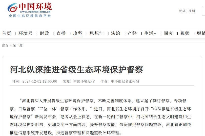 中国环境网:河北纵深推进省级生态环境保护督察